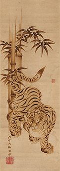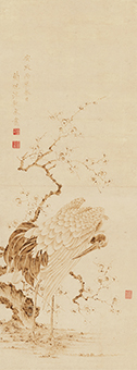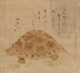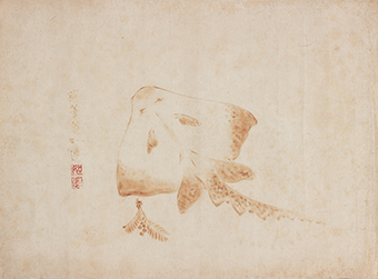 江戸時代には、優れた焼絵を数多く手掛けた稲垣如蘭(いながきじょらん)こと近江山上(やまかみ)藩(現在の滋賀県東近江市)の第五代藩主稲垣定淳(さだあつ、1762~1832)をはじめ、藩主や家老クラスの間でこの技法が流行しました。少ない材料で制作可能な点から、根底には質素倹約を推奨する時世を反映しているとも推測されます。一方、葛飾北斎の弟子とされる北鼎如連(ほくていじょれん、生没年不詳)のような浮世絵師にも焼絵の名手が現れ、さらには狩野派の特徴を有する作例も確認されています。技法の特殊さから作例は多くはないですが、一部の間では試みられていた様子がうかがえます。また、大田南畝(なんぽ)と来舶した中国人との間で焼絵談議が行われ、朝鮮通信使を介し烙画が紹介されるなど、焼絵を通した国際交流も行われました。